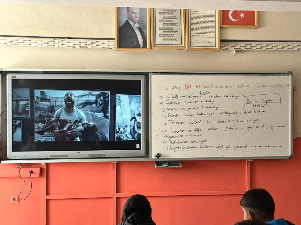 Filistin'deki insan hakları ihlallerinin sona erdirilmesine yönelik desteğimizi göstermek, öğrencilerimizin insan hakları ve demokratik duyarlılığını, ortak sorumluluk bilincini pekiştirmek adına okulumuzda etkinlikler düzenlenmektedir.